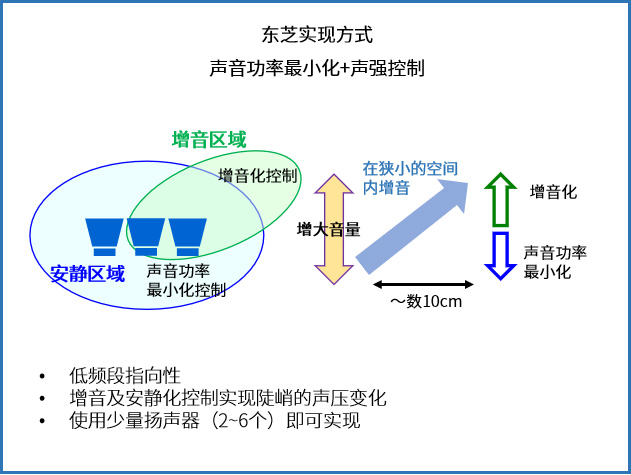 利用音場(chǎng)控制技術(shù),無(wú)需特殊硬件,使用三個(gè)揚聲器,利用空間聲壓分布可創(chuàng )建聲音輸出清晰的區域和難以聽(tīng)到的區域。