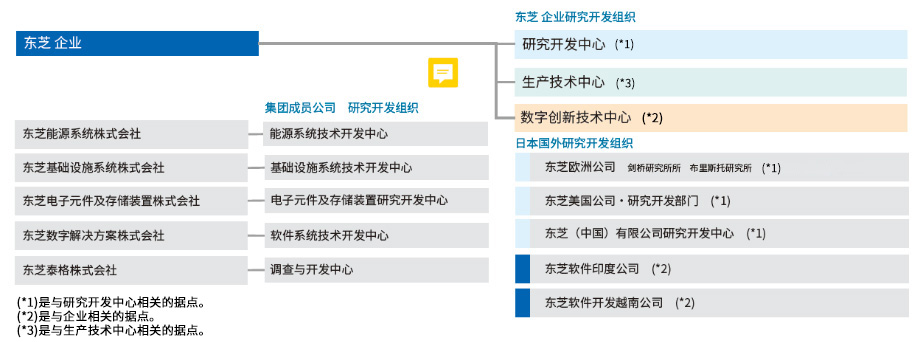東芝集團的研究開(kāi)發(fā)體制由集團(總部)的研究開(kāi)發(fā)部門(mén)、集團內公司的研究開(kāi)發(fā)部門(mén)及設計&技術(shù)部門(mén)組成,各部門(mén)分工協(xié)作,高效推進(jìn)。集團研發(fā)部門(mén)從中長(cháng)期的角度深化基礎技術(shù),致力于新業(yè)務(wù)領(lǐng)域的研究、進(jìn)行創(chuàng )新性和前瞻性研發(fā)。